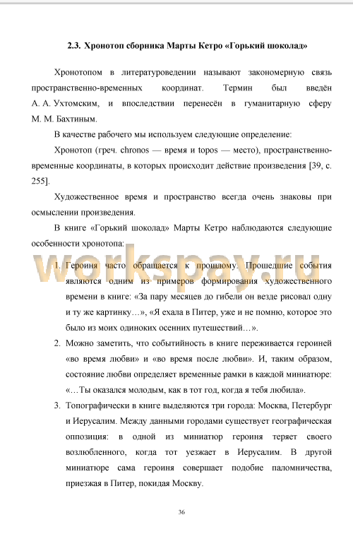 2.3. Хронотоп сборника Марты Кетро «Горький шоколад» 36