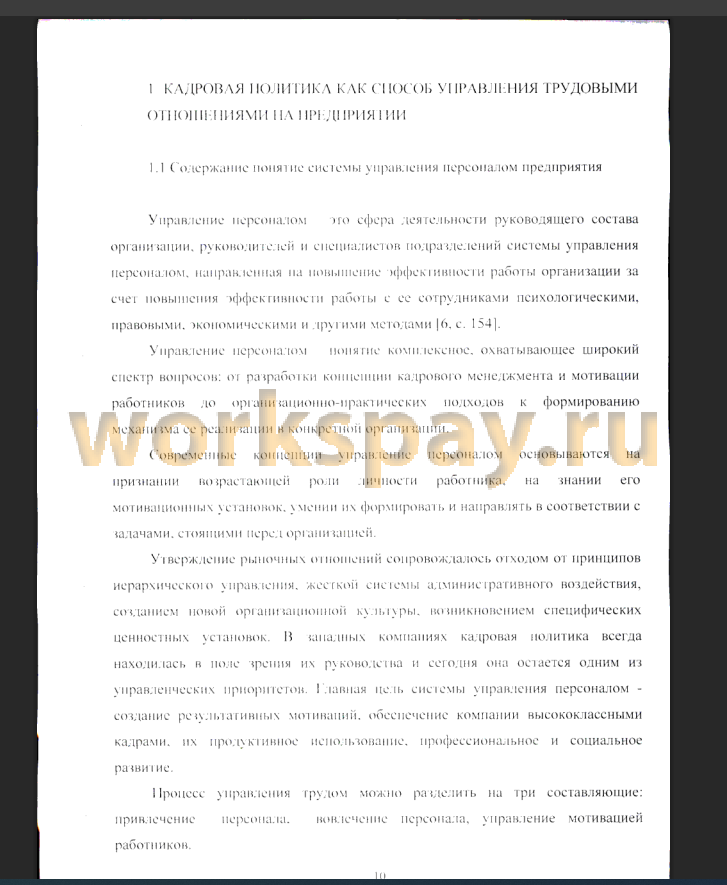 В первой главе «Кадровая политика как способ управления трудовыми отношениями на прел при я i ни» раскры то содержание системы управления персоналом предприятия, понятие и сущность кадровой политики, а также методологические подходы к формированию кадровой политики.