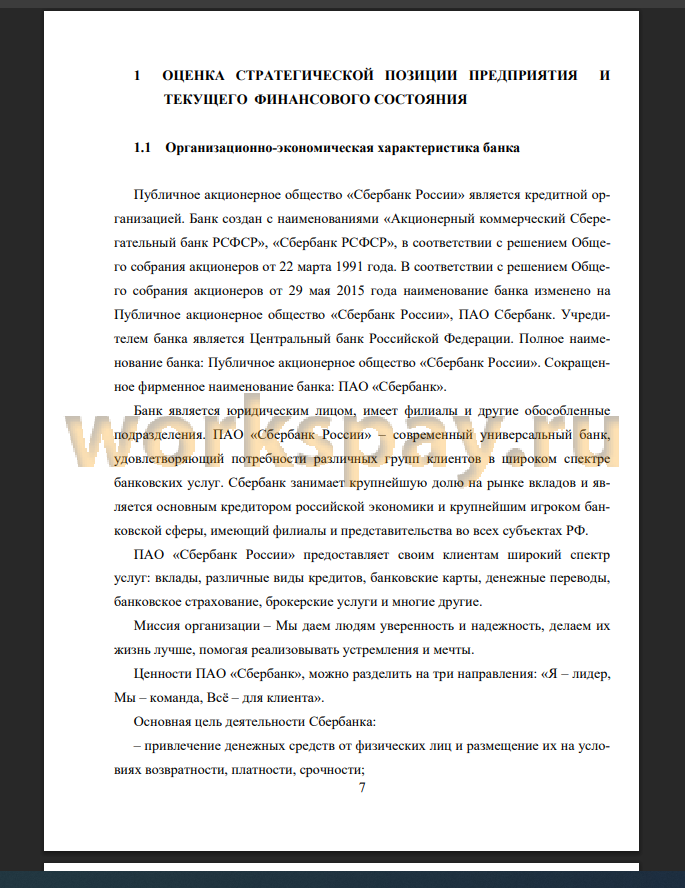 - провести анализ организационно-экономической характеристики ПАО Сбербанк РФ;