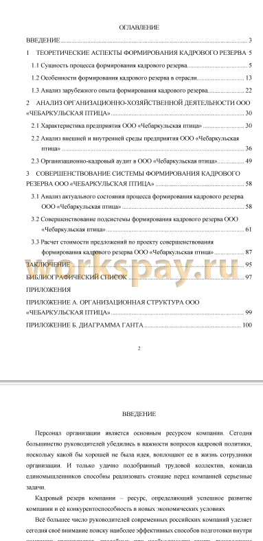 Тема: Формирование кадрового резерва на примере ООО «Чебаркульская птица»