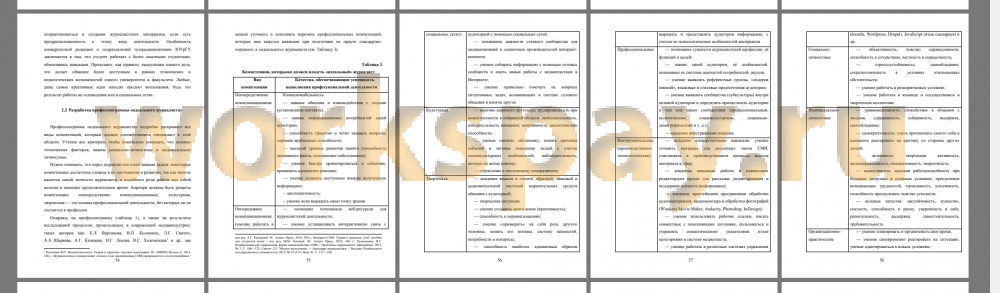 Разработка профессиограммы «идеального журналиста» помогает объективно увидеть профессионала в проекции. Виды компетенций дают полное представление о том, каким должен быть студент, который решает стать «идеальным профессионалом». Непосредственно коммуникационная компетенция раскрывает качества, где необходимо приобрести навыки общения и взаимодействия с людьми, знать потребность совей аудитории, грамотно задавать вопросы, иметь высокий уровень развития памяти, быть дипломатичным.