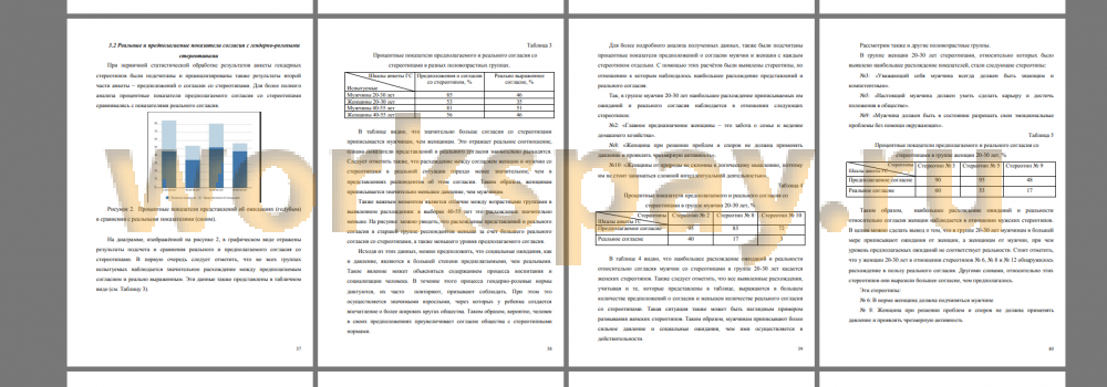 В теоретической части работы рассмотрены основные понятия, связанные с темой исследования. Также проведён обзор отечественных и зарубежных исследований в рамках темы гендерных стереотипов. Помимо этого, описаны сами гендерно-ролевые стереотипы, существующие на сегодняшний день.