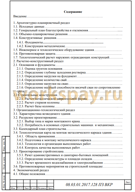 -В организационно-технологическом разделе выбраны и обоснованы решения по технологии и организации строительства здания: составлен календарный план на возведение здания, составлена технологическая карта на монтаж металлического каркаса здания, выбраны основные машины и механизмы, расчитана потребность во временых зданиях и сооружениях, и прочих ресурсов;