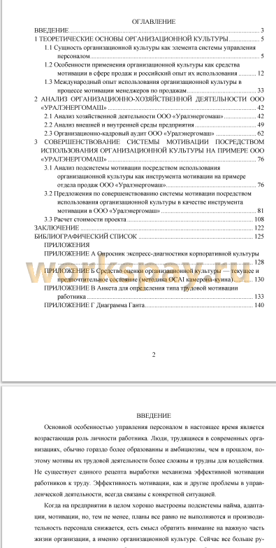 Объектом данной выпускной квалификационной работы является ООО «Уралэнергомаш». Предметом исследования - организационная культура ООО «Уралэнергомаш». Цель работы- совершенствование организационной культуры для повышения мотивации менеджеров по продажам.