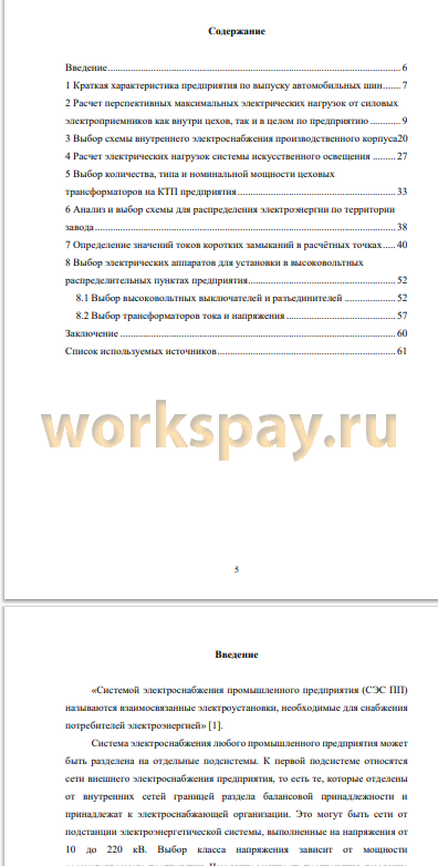 Произведен выбор кабельных линий до центров питания (РП) и от РП до трансформаторных подстанций промышленного предприятия. Выполнено определение токов короткого замыкания в расчетных точках сети на сторонах 0,4 и 10 кВ. Произведены выбор и проверка на устойчивость к воздействию токов короткого замыкания электрооборудования РП и ТП предприятия.