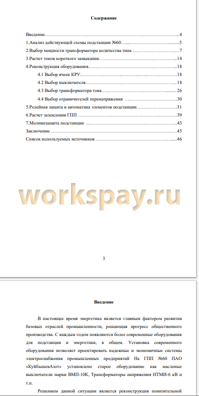 В данной бакалаврской работе выполнено комплексное проектирование реконструкции электрической части главной понизительной подстанции (ГПП) №60 ПАО «КуйбышевАзот». Актуальность исследования обусловлена моральным и физическим износом существующего электрооборудования, такого как масляные выключатели ВМП-10К, что создает риски снижения надежности электроснабжения критически важного химического предприятия, потенциально ведущие к технологическим сбоям, финансовым потерям и угрозам безопасности. Основные результаты включают детальный расчет электрических нагрузок и токов короткого замыкания, на основании которых обоснован выбор современного оборудования: двух силовых трансформаторов ТРДЦН-63000/110/6/6, вакуумных выключателей ВВ/ТЕЛ-10, ограничителей перенапряжения ОПН-КР/ТЕЛ-6/6,0 и ячеек КРУ СЭЩ-59. Разработаны схемы релейной защиты (дифференциальная, газовая, максимально-токовая), а также выполнены расчеты защитного заземления и молниезащиты. Научная и практическая значимость работы заключается в применении системного подхода к модернизации энергообъекта, обеспечивающего повышение надежности, безопасности и экономической эффективности электроснабжения за счет внедрения современных аппаратов, требующих меньших эксплуатационных затрат. Теоретической основой послужили труды специалистов в области проектирования электрических сетей и подстанций, таких как А.А. Герасименко, В.А. Ермаков, И.Г. Карапетян, а также актуальные нормативные документы, включая ГОСТ 14209-97.