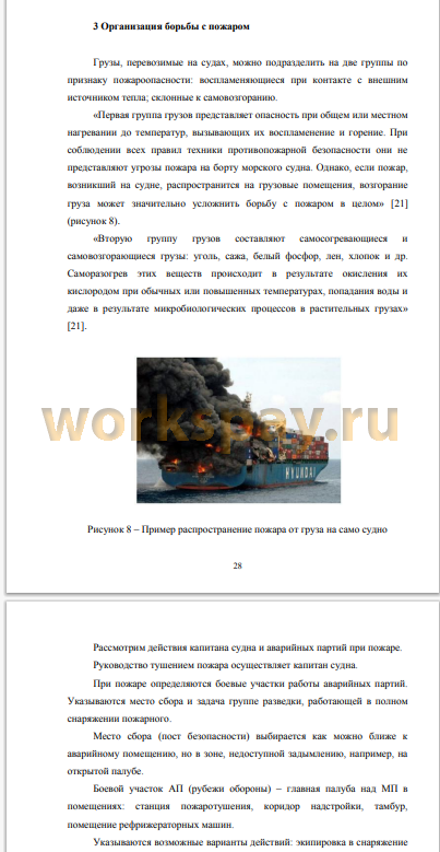 По результатам анализа обеспечения пожарной безопасности на сухогрузном теплоходе проекта 17310 «река-море» было выяснено, что высокую пожароопасность на судне представляют сыпучие грузы склонные к самонагреванию (грузовой отсек).