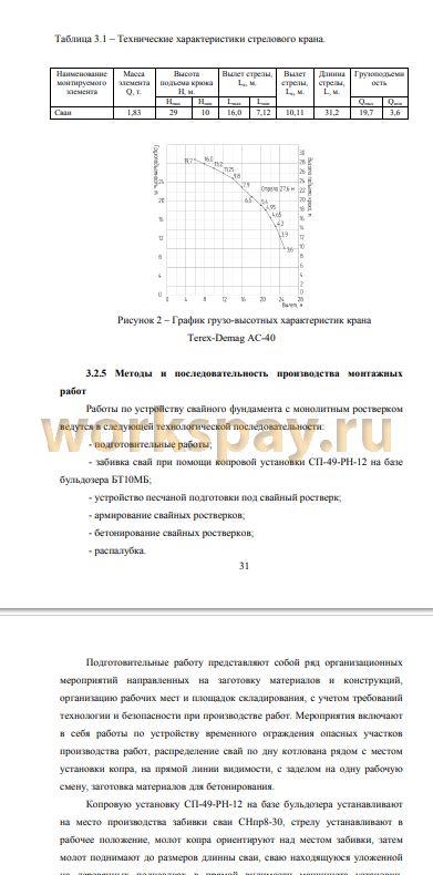3. Разработана технологическая карта на исполнение строительно- технического процесса - устройство конструкции свайного фундамента. Описан состав технологических процессов, ресурсов и средств механизации, требования к качеству выполняемых работ и инструкций для рабочих.