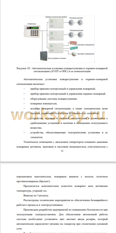 Рассмотрена система автоматического пожаротушения и охранной сигнализации. Предлагается дополнительно оснастить пожарное депо датчиками температура, угарный газ.