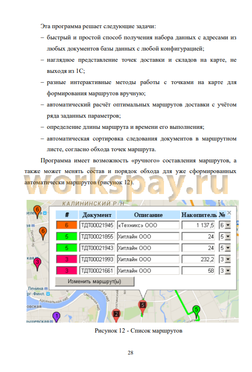 В третьей главе рассматривается процесс разработки программы оптимизации планирования доставки грузов на основе предлагаемого решения.
