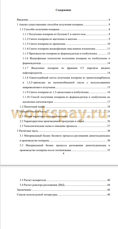 - на основе анализа научной и патентной литературы выбрать направление оптимизации существующей технологии производства изопрена;