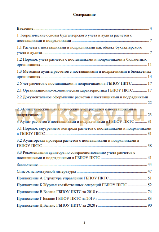 Цель выпускной квалификационной работы заключается в исследовании порядка бухгалтерского учета и аудит расчетов с поставщиками и подрядчиками на примере ГБПОУПКТС.