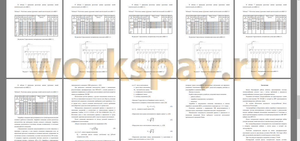 В работе приняты кабели, не распространяющие горение, с низким дымо- и газовыделением: для распределительных сетей внутри здания кабели с медными жилами марки ВВГнг(А)-LSLTх, для сетей аварийного освещения и электроприемников, которые сохраняют свою работоспособность в условиях пожара - кабели марки ВВГнг(А)-FRLSLTх.