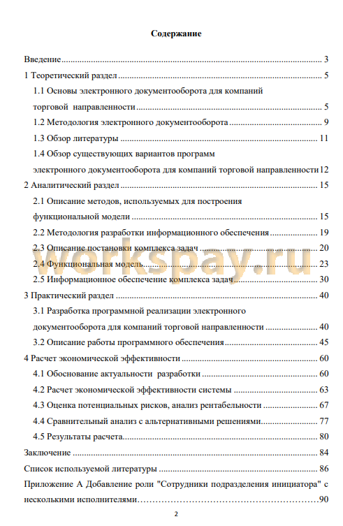 В ВКР рассмотрены основы электронного документооборота для компаний торговой направленности, методология электронного документооборота, обзор литературы, обзор существующих вариантов программ электронного документооборота для компаний торговой направленности.
