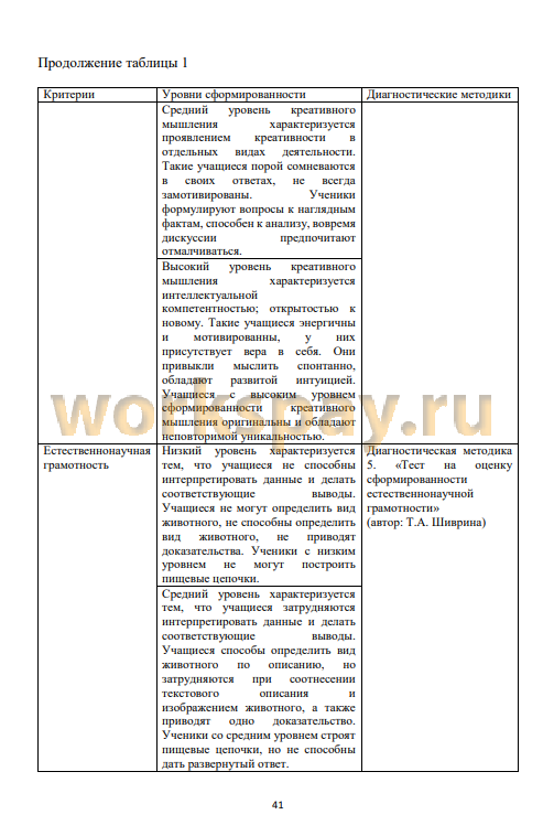 3) диагностический инструментарий содержит критерии и показатели сформированности функциональной грамотности, соответствующие её компонентам: читательская грамотность, креативное мышление, естественнонаучная грамотность. Каждый из них является системой функциональной грамотности. То есть формирование функциональной грамотности возможно только в случае, когда она опирается на каждый из этих компонентов и способствует формированию каждого из них.