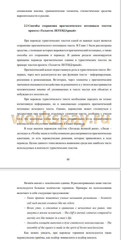 Во второй главе «Способы сохранения прагматического потенциала текстов проекта «Тольятти ЛЕГЕНДАрный» рассматриваются характеристики туристических текстов проекта «Тольятти ЛЕГЕНДАрный», а также способы сохранения прагматического потенциала данных текстов.