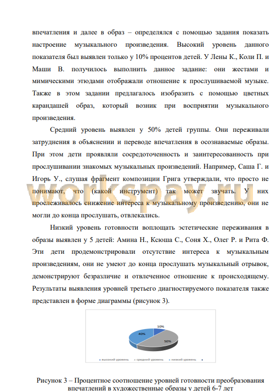 Констатирующий эксперимент показал, что в среднем у 55% детей экспериментальной выборки выявлены средний и низкий уровни развития эстетических чувств. В процессе формирующего эксперимента мы проверяли положения гипотезы, согласно которой совершенствование процесса развития эстетических чувств детей 6-7 лет в процессе восприятия музыки возможно, если: