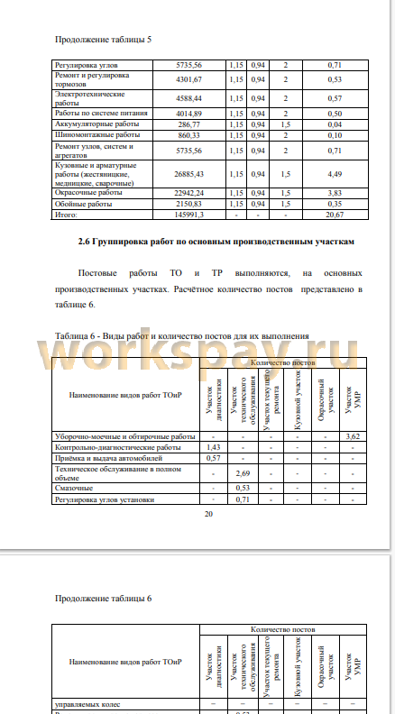 2.6 Группировка работ по основным производственным участкам 20