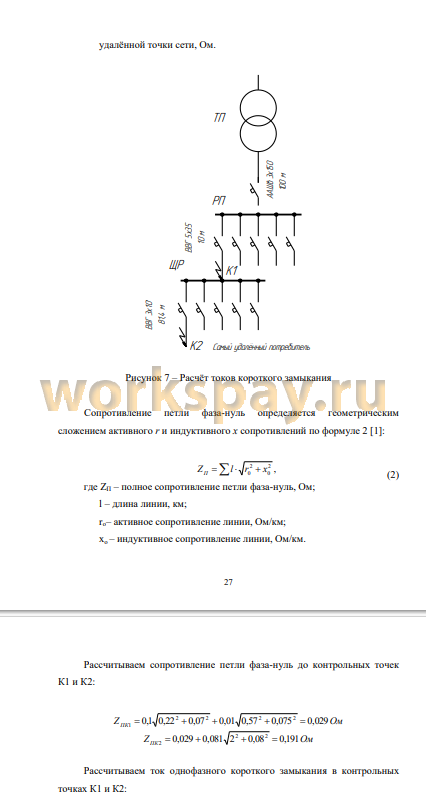 Произведён расчёт токов короткого замыкания. Выбрано устройство защитного отключения типа ВД1-63. Определено, что чувствительность выбранного устройства защитного отключения ВД1-63 достаточна.