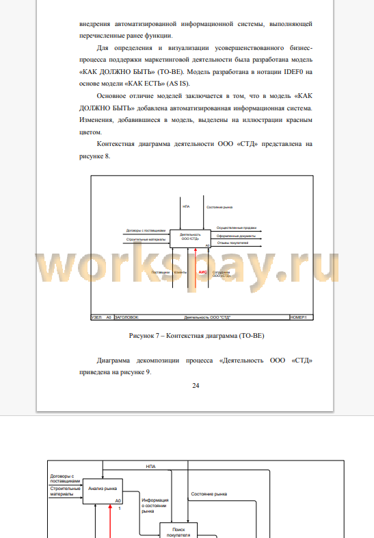 В первой главе бакалаврской работы приведены результаты анализа деятельности предприятия ООО «СТД». Представлены функциональные модели маркетинговой деятельности предприятия «КАК ЕСТЬ» и «КАК ДОЛЖНО БЫТЬ».